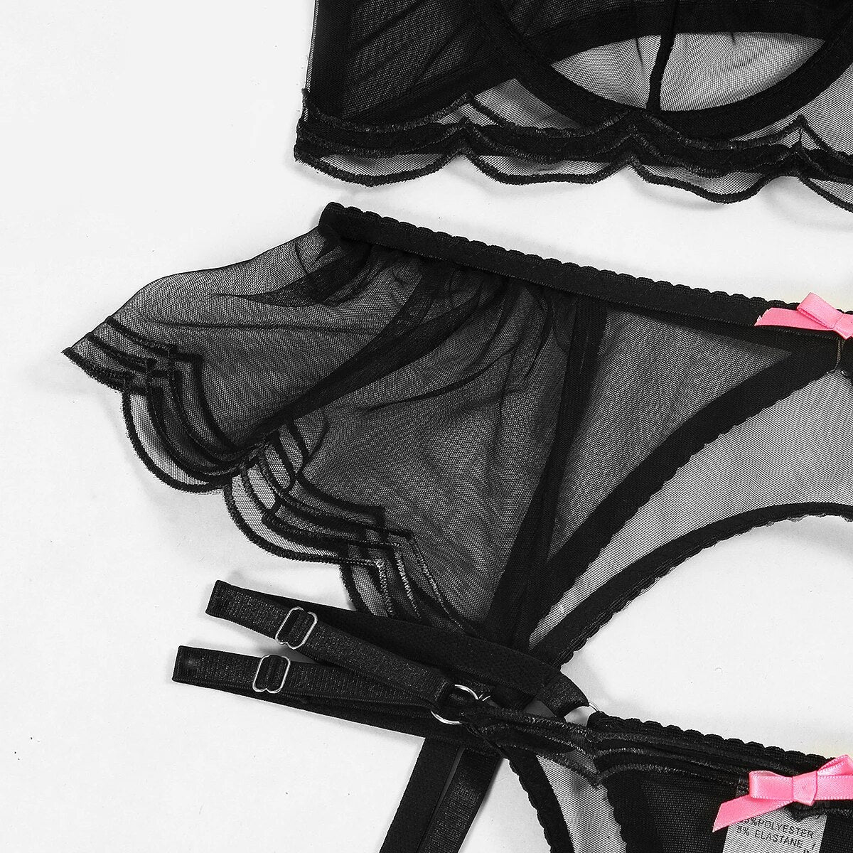 Crafted with meticulous attention to detail, the lingerie set features a ruffle garter lace bra that leaves just enough to the imagination. The transparent outfit exudes a sultry charm, teasing and tantalizing in equal measure. The seamless sex suit wraps your curves in a fantasy of intimate elegance, creating an enticing silhouette that demands attention.