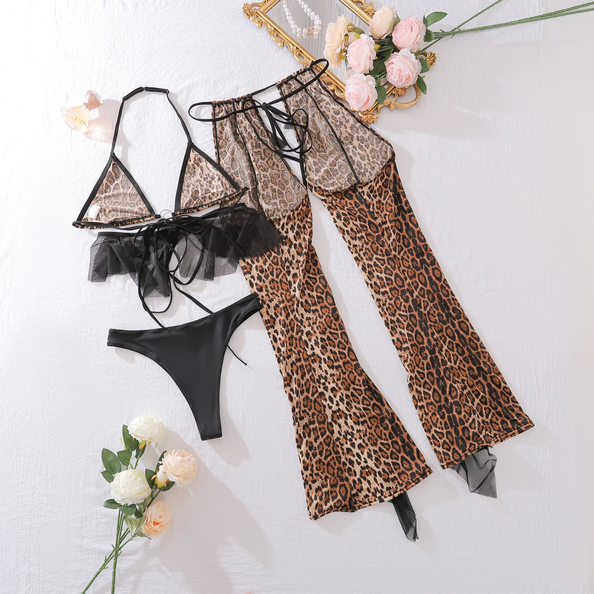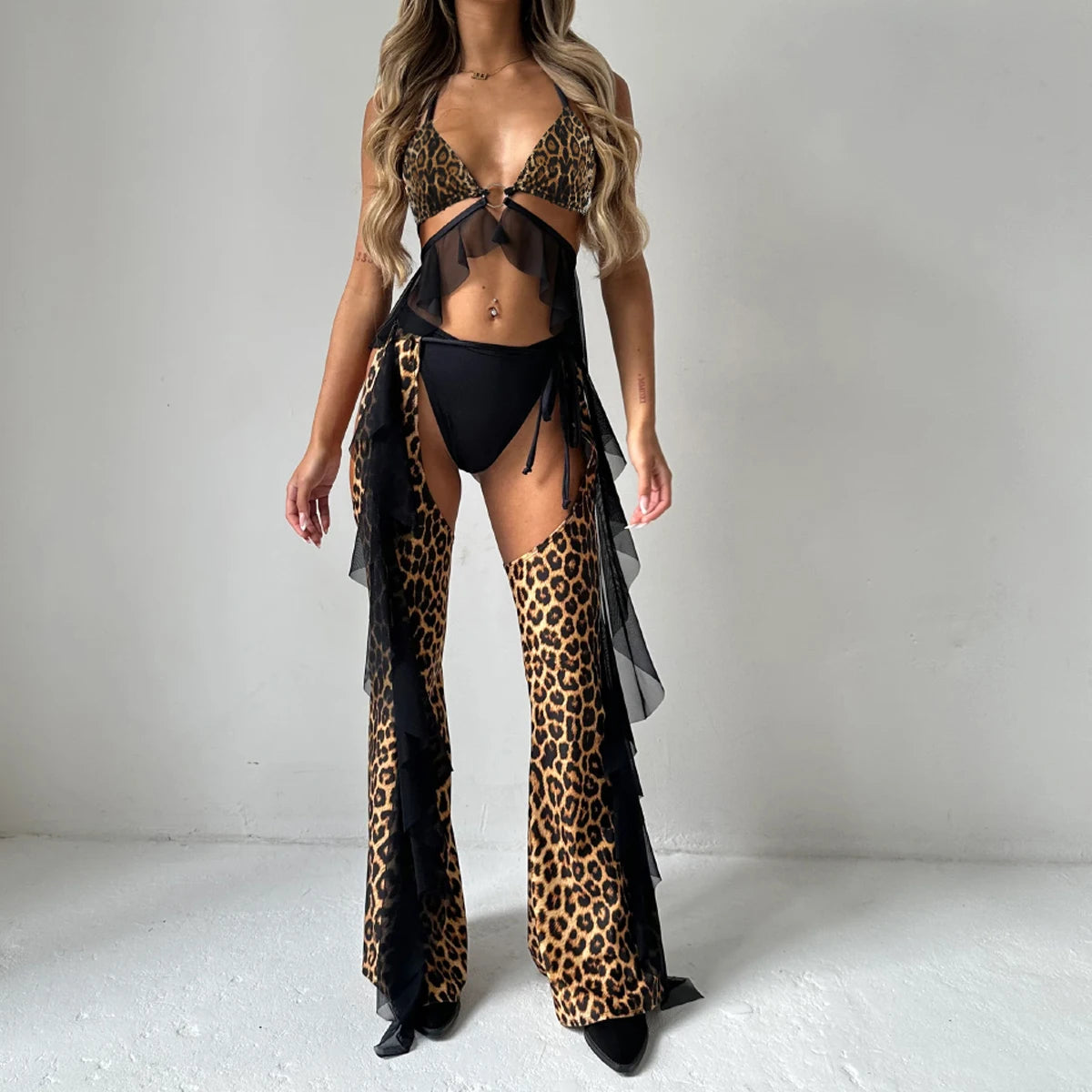 - Set Includes: Triangle Bra, Panties & Cowgirl Chaps